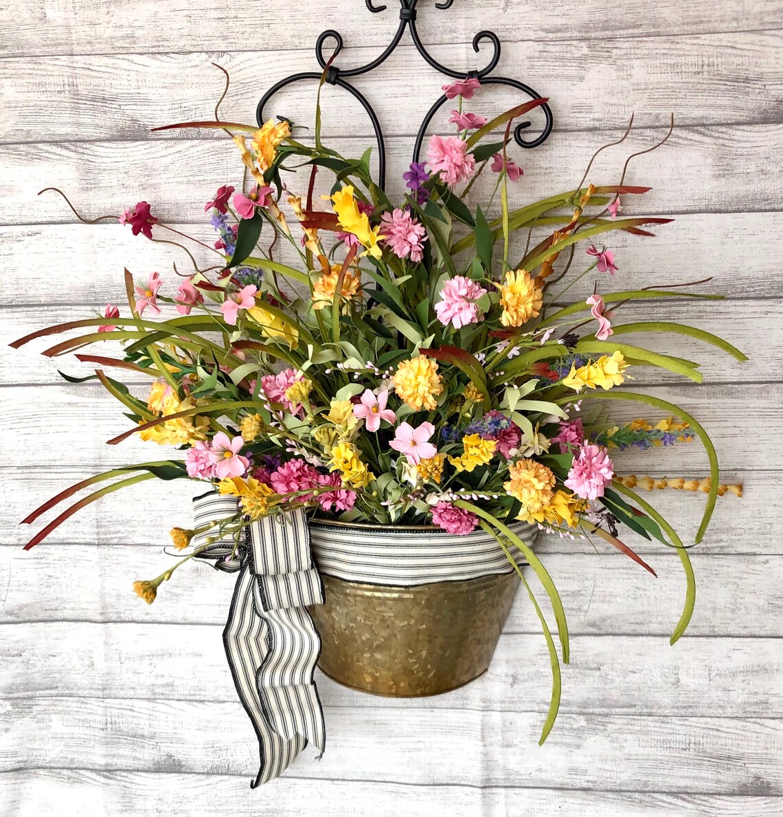 Floral Basket Galvanized Buckets French Inspired Decor Etsy Spring Bucket Wreath Basket check out our bucket wreaths selection for the very best in unique or custom, handmade pieces from our wreaths shops. shop handcrafted wreaths for every season & every reason! If you love decorating your front door with flowers but want to step away from the idea of a. this custom created farmhouse bucket wreath is full of. Bucket Wreath Basket.