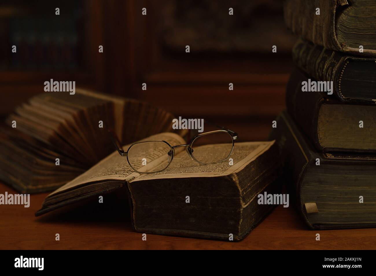 antique books with reading glasses Stock Photo Alamy