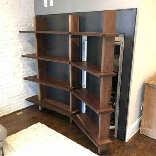 Custom Walnut Shelving Unit with Hidden Closet Door by Joe Cauvel of