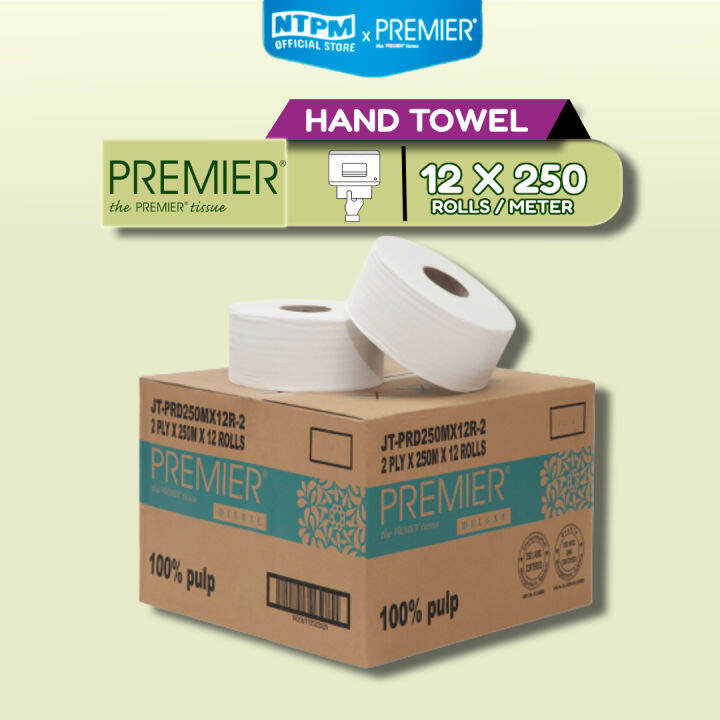 Premier Deluxe Jumbo Hand Towel (2 ply) (250M x 12Rolls) Lazada