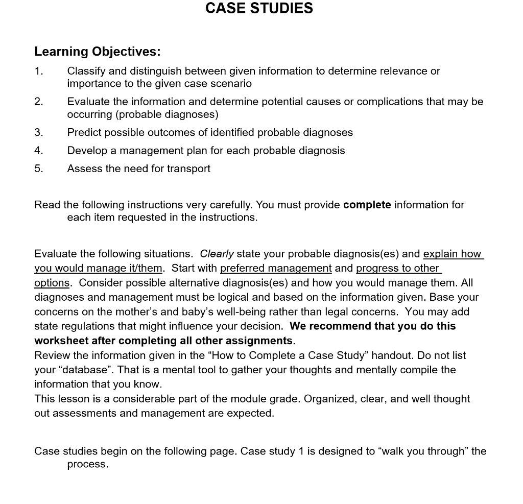 CASE STUDIES Learning Objectives 1. Classify and