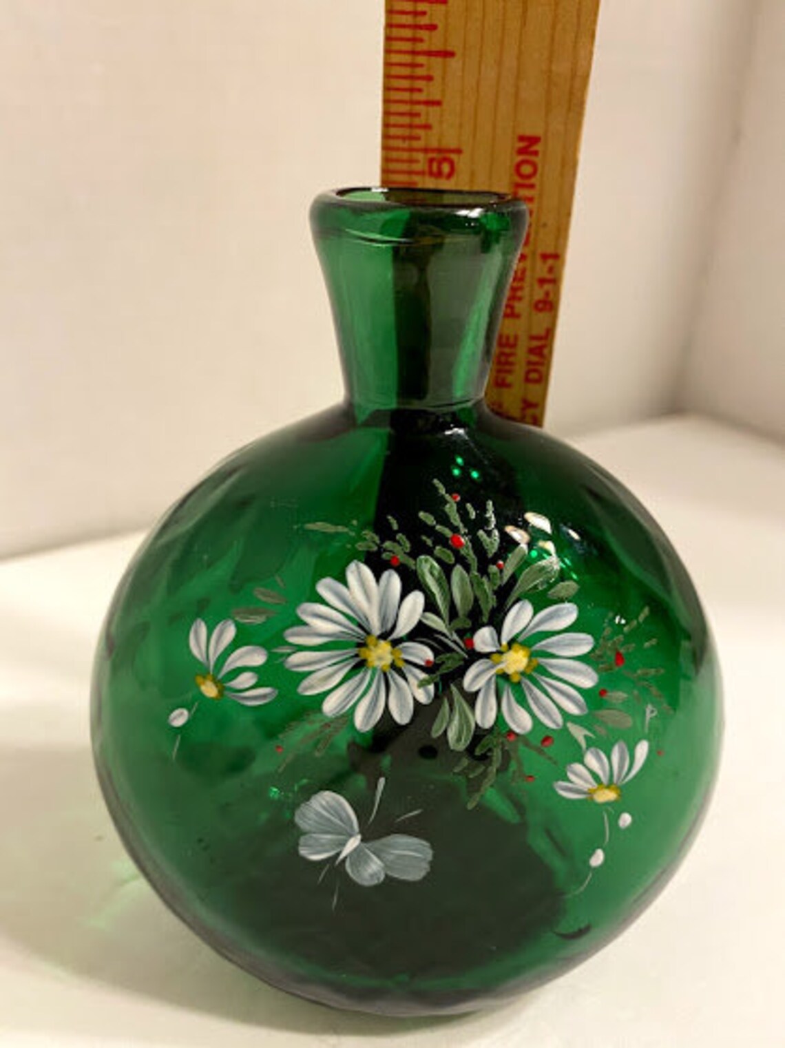 Vintage Hand blown/hand painted green small mouth vase/bottle Etsy