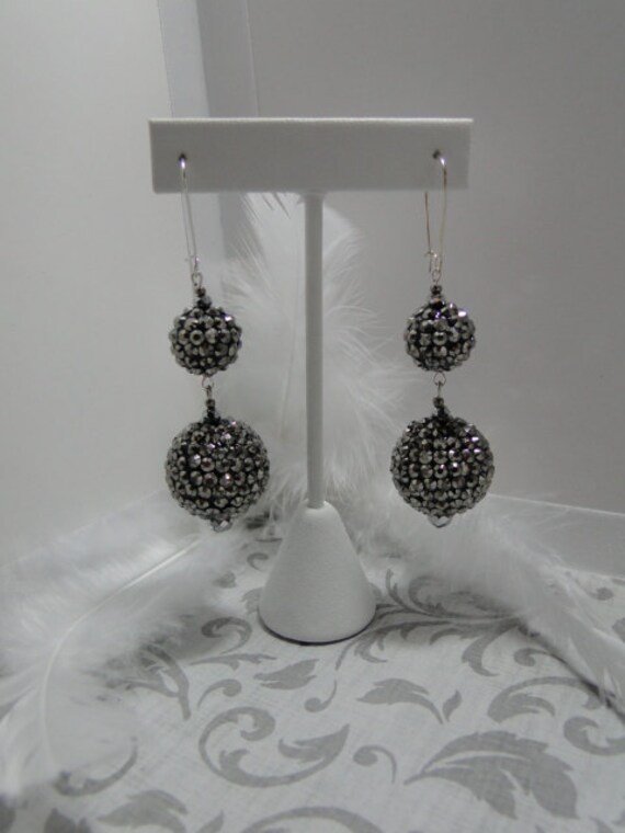 Items similar to Double Sparkle Pave Ball Dangle Earrings Perfect for