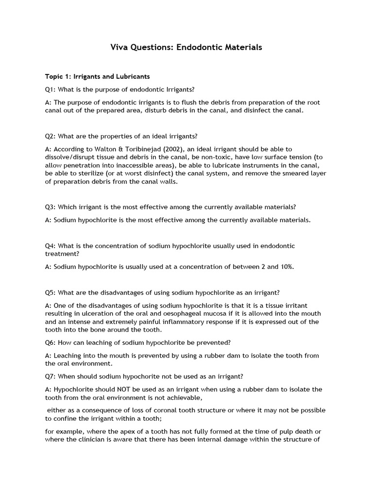 Viva QuestionsEndodontic Materials PDF Chemical Compounds Chemistry