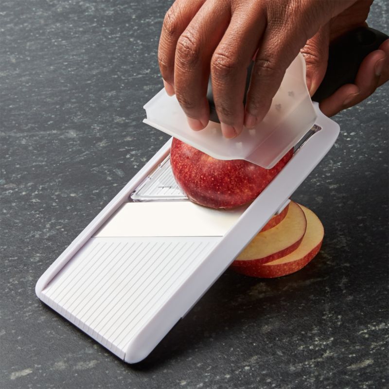 OXO HandHeld Mandoline Slicer + Reviews Crate & Barrel Canada How To Use A Handheld Mandoline Slicer From adjusting the thickness of your slices to mastering the proper hand techniques, we’ve got you covered. This handy tool makes slicing potatoes a breeze, saving you time and effort. In this quick guide, we’ll walk you through the basics of how to use a mandoline slicer, making your food prep a breeze. Mandolines are known for having an extra. How To Use A Handheld Mandoline Slicer.