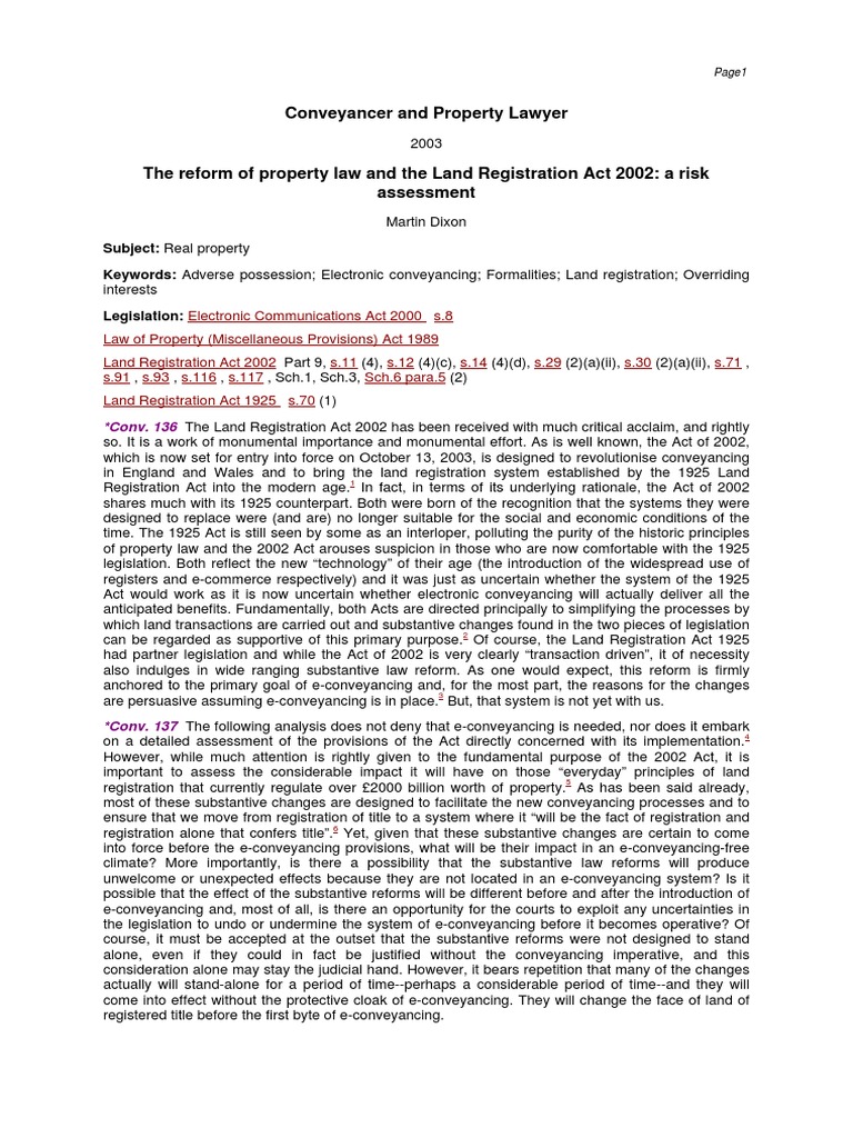 The Reform of Property Law and The Land Registration Act 2002Libre