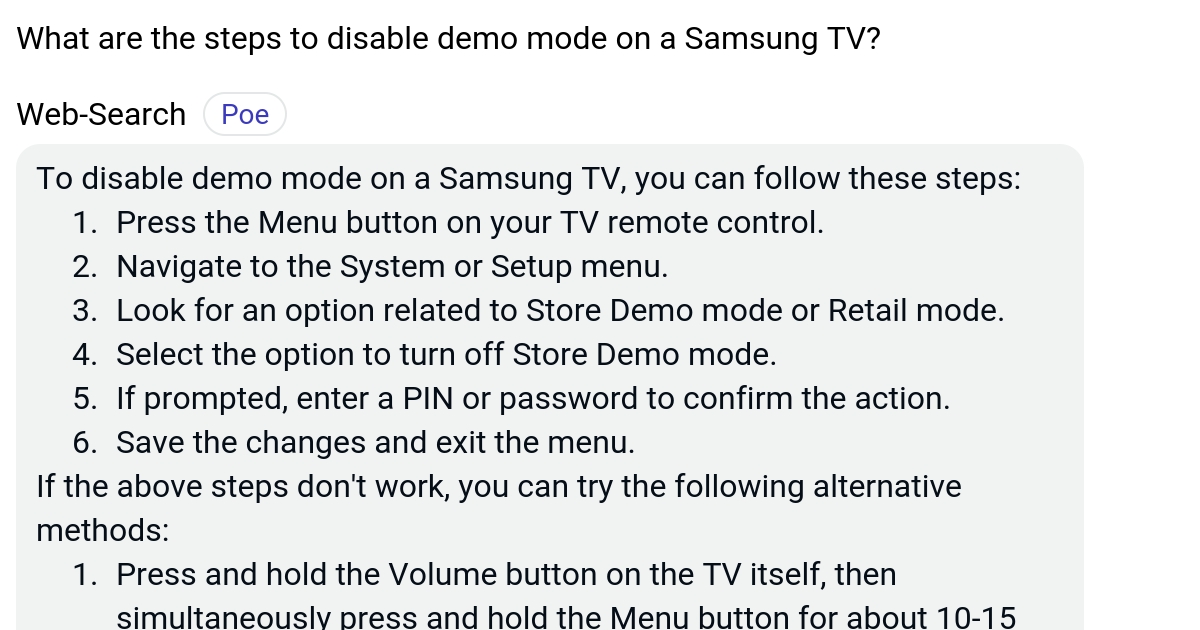 What are the steps to disable demo mode on a Samsung TV? Poe