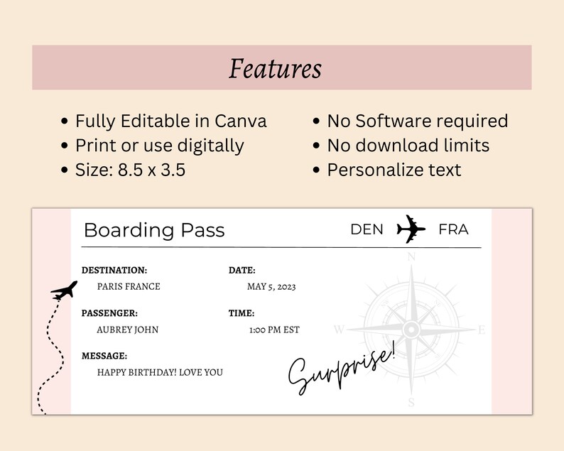 EDITABLE Compass Boarding Pass Canva Template Compass Ticket Printable