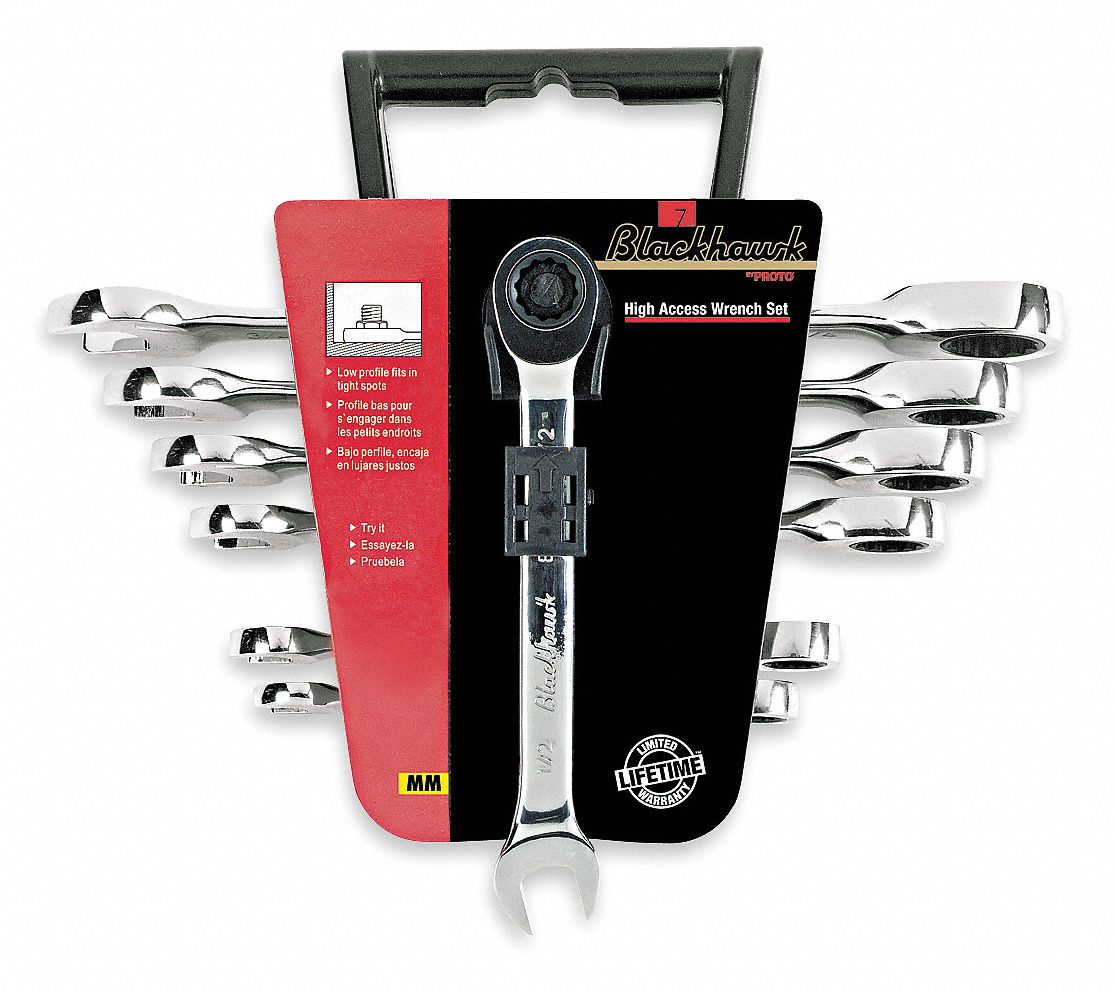 BLACKHAWK BY PROTO Metric Combination, High Access Ratcheting Wrench Blackhawk Ratcheting Wrench Set Sae angled wrench for knuckle clearance. Thin head and slim shank. And 1/2in., is a versatile, lightweight wrench. the blackhawk by proto full polish 7/16in. Fine tooth gears for smooth ratcheting. blackhawk ratchet wrench set has fine tooth gears for. Blackhawk Ratcheting Wrench Set Sae.