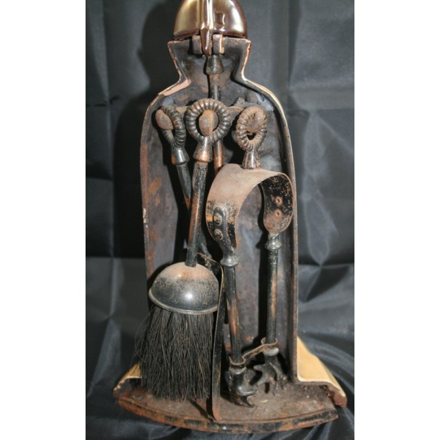 Enamelled Cast Iron Knight Fire Companion Set c.1930