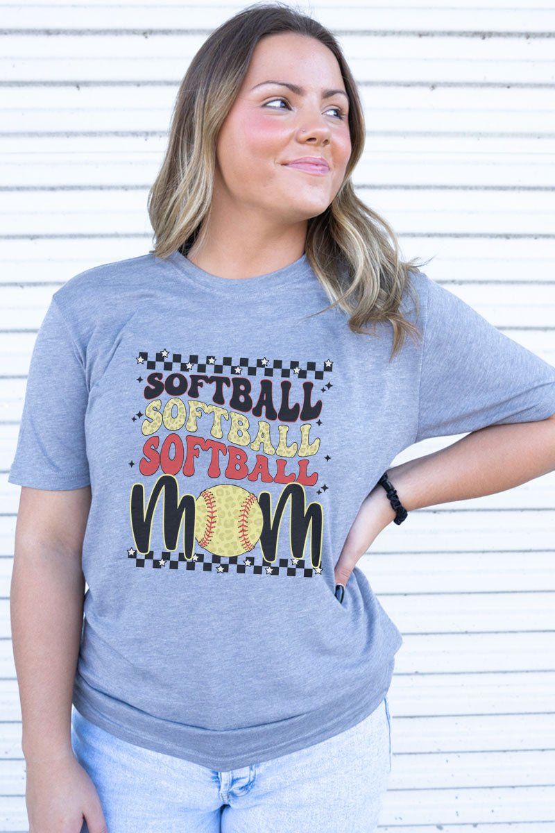 Groovy Stacked Softball Mom Adult SoftTek Blend TShirt Wholesale