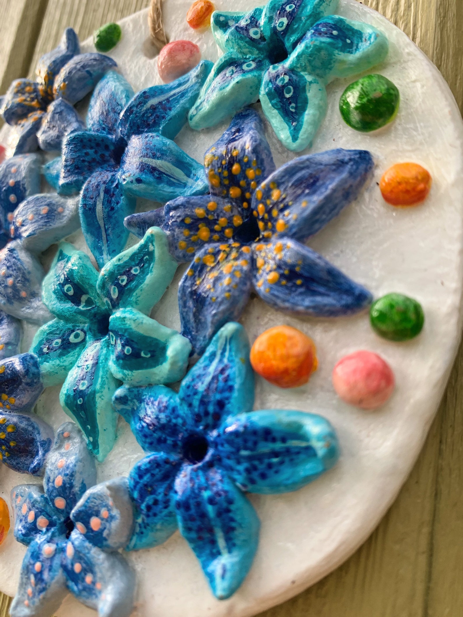 Ceramic Wall Art Flowers Motifs Starfish Home Decor Etsy