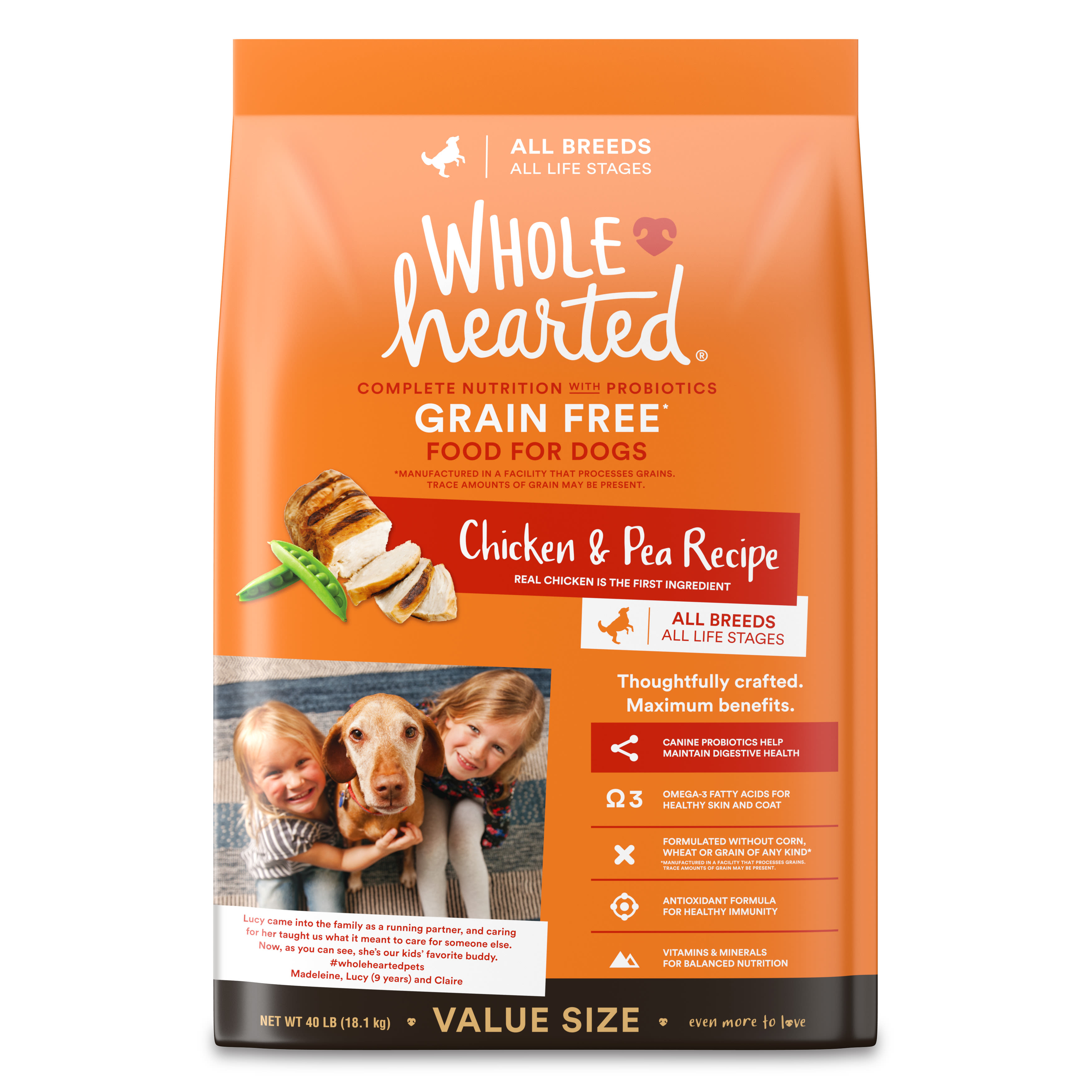 WholeHearted GrainFree Chicken & Pea Dry Dog Food 40 lbs