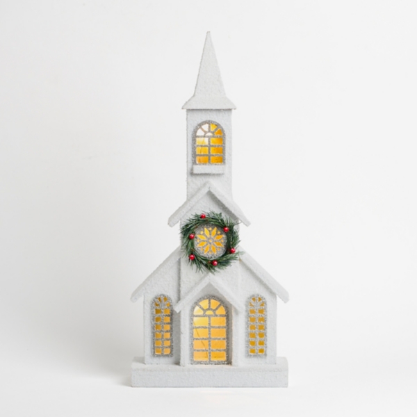 LED Flocked White Christmas Church Statue Kirklands Home