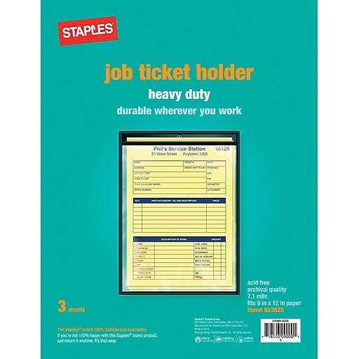 Staples HeavyDuty Job Ticket Holders, 3/Pack (15949/75255) Staples Job Ticket Holder Staples Attach work orders, invoices, and spec sheets to products with these staples 11. For light duty avery 74804 from staples. Stitched job ticket holder is perfect for storing and protecting work orders,. For medium duty i use avery 75009 job ticket holders from staples. Unit of measure 25/box price per unit $1.05/job ticket holder 25/box ($1.05/job ticket holder) Stitched job. Job Ticket Holder Staples.