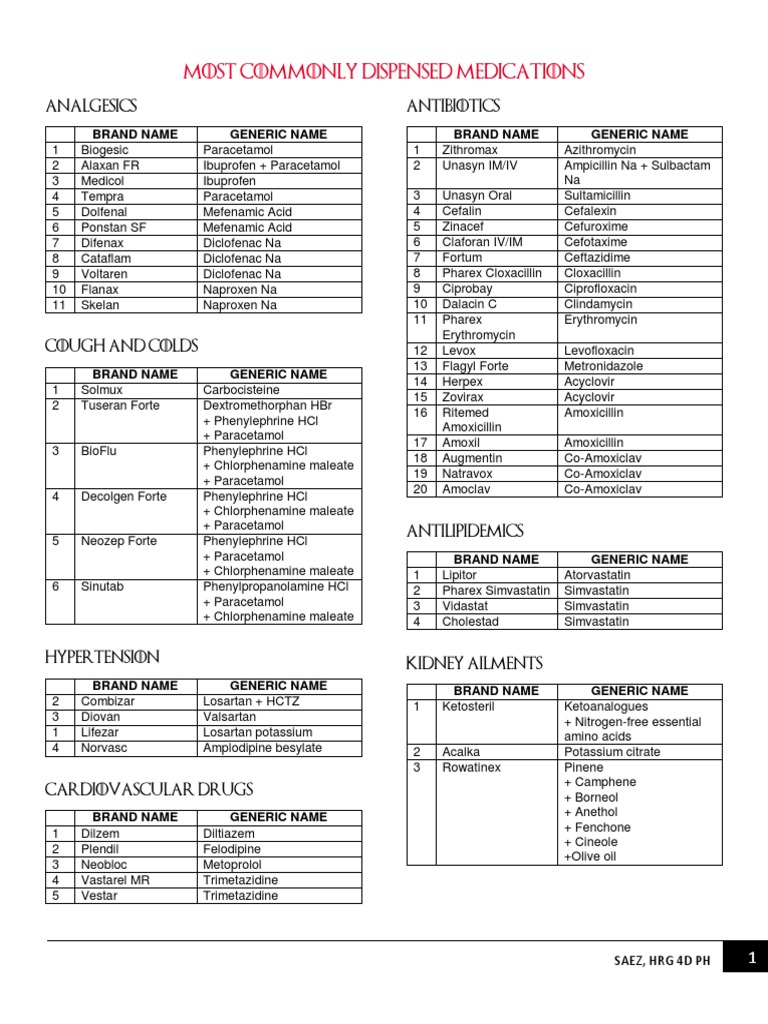 Most Commonly Dispensed Medications PDF Drugs Rtt