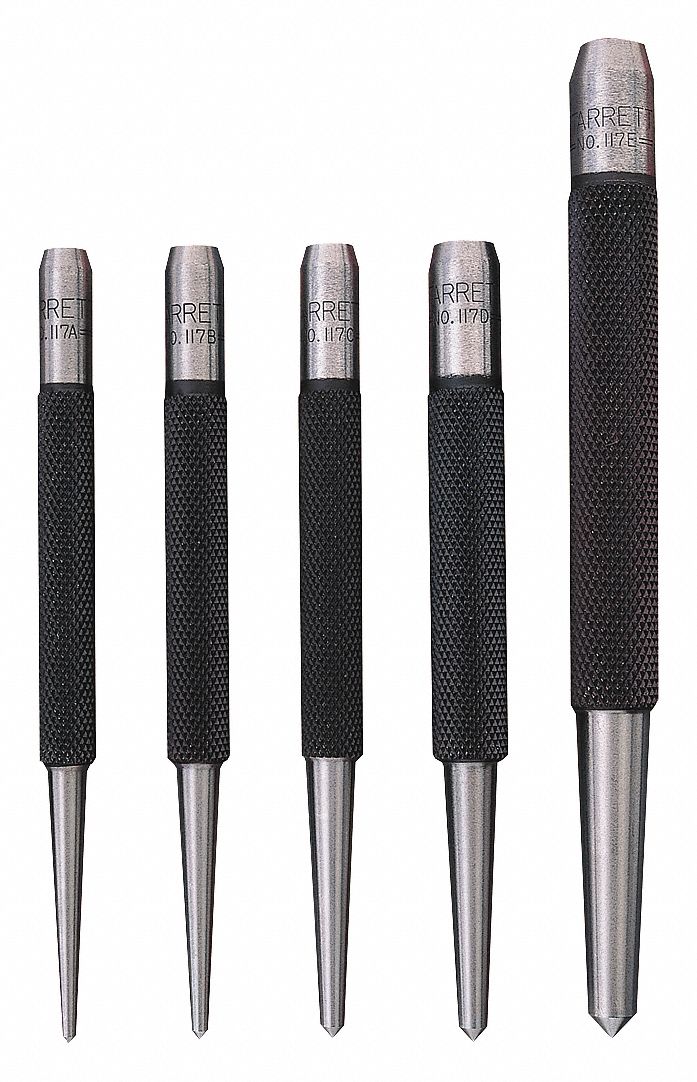 STARRETT 3 to 5 in Steel Center Punch Set; Number of Pieces 5 2ZVF5