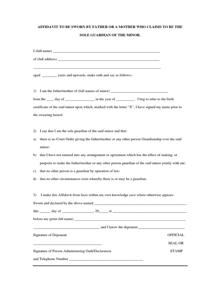 Sample Travel Doc Affidavit For Sole Guardianship PDF Sole Guardianship Meaning A parent or person who wishes to apply for the sole guardianship of a child, must understand what is expected of a guardian. In terms of section 18 (2) (b) as well as section 18 (3) of. Sole guardianship gives the awarded party full rights to make decisions concerning the child without consulting the other parent first Sole custody, often. Sole Guardianship Meaning.