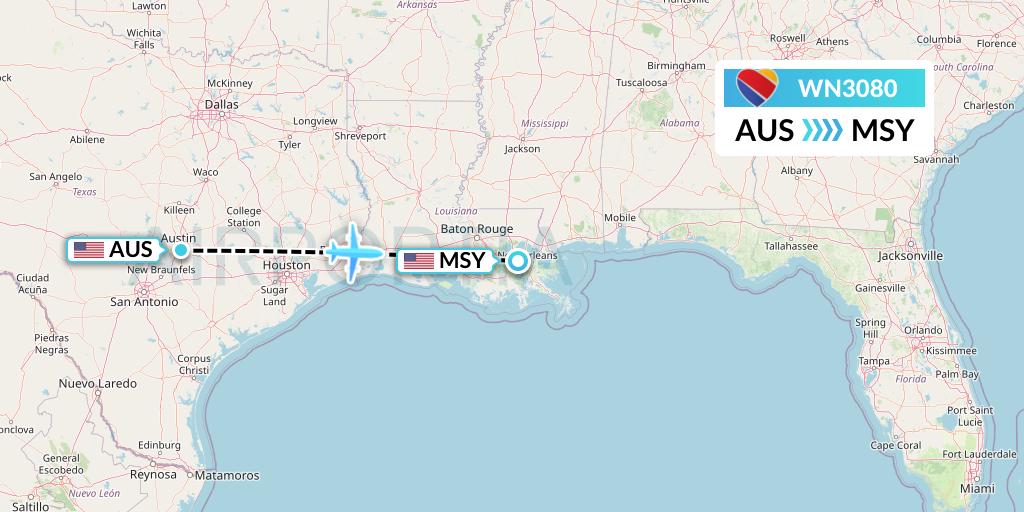 WN3080 Flight Status Southwest Airlines Austin to New Orleans (SWA3080)