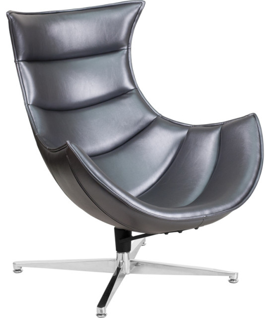 Gray Leather Swivel Cocoon Chair Midcentury Armchairs And Accent