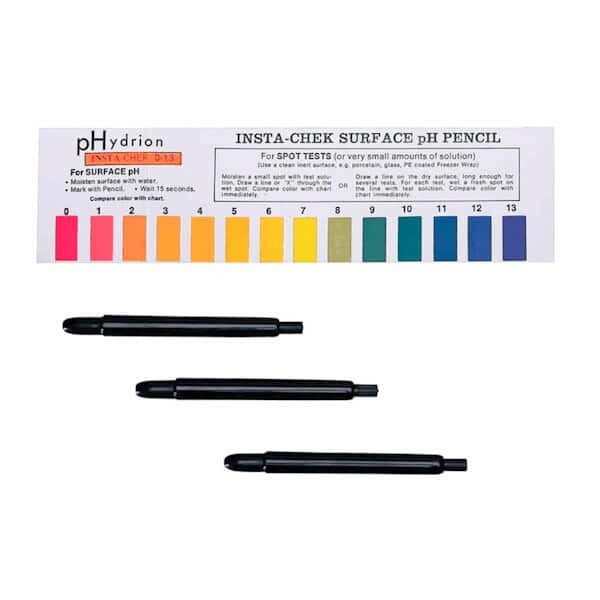 3 Pack Hydrion P12m Insta Chek 013 Range Mechanical Ph Pencils Ph Test Pencil The hydrion mechanical ph pencil measures the ph of any surface to the nearest full ph value. Stroke the surface with the pencil. To measure the surface ph just wet the surface with distilled water. The paper or sample turns color and is matched to a. No technical training is necessary. It measures from ph 0. The hydrion ph pencil. Ph Test Pencil.