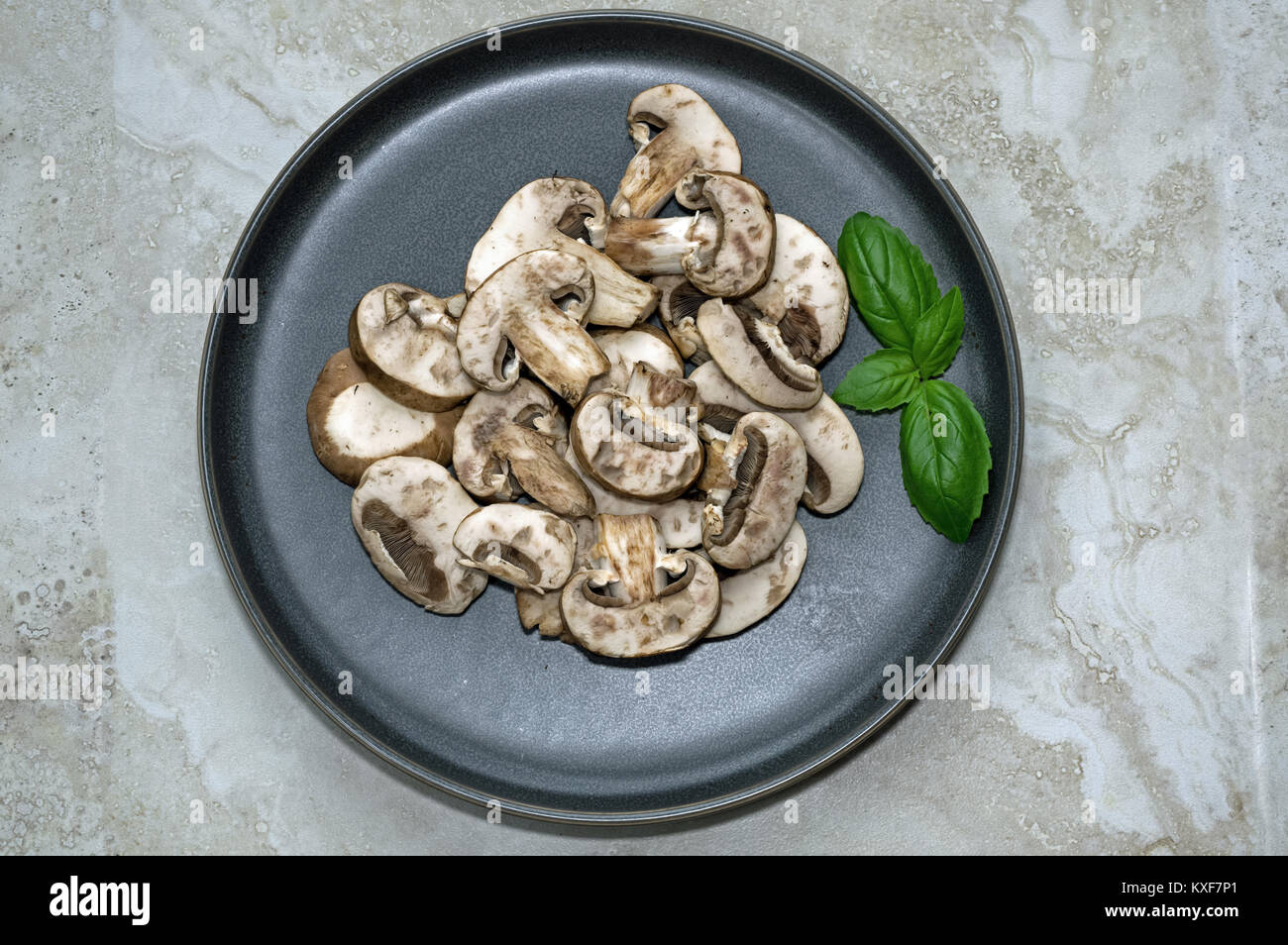 Sliced mini portobello mushrooms with basil Stock Photo Alamy