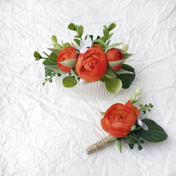 Flower Hair comb, Burnt orange flower hair comb, Red flower hair comb Flower Hair Comb Orange explore sustainable wedding hair combs, perfect for a boho wedding. 3 lily silk flowers attached to a clear hair comb; this beautiful silk rose flower (orange) hair comb is a perfect accessory for a beach wedding, party, celebration, and any special occasion. Choose a unique dried flower hair comb or get a bespoke quote within 24 hours! . Flower Hair Comb Orange.
