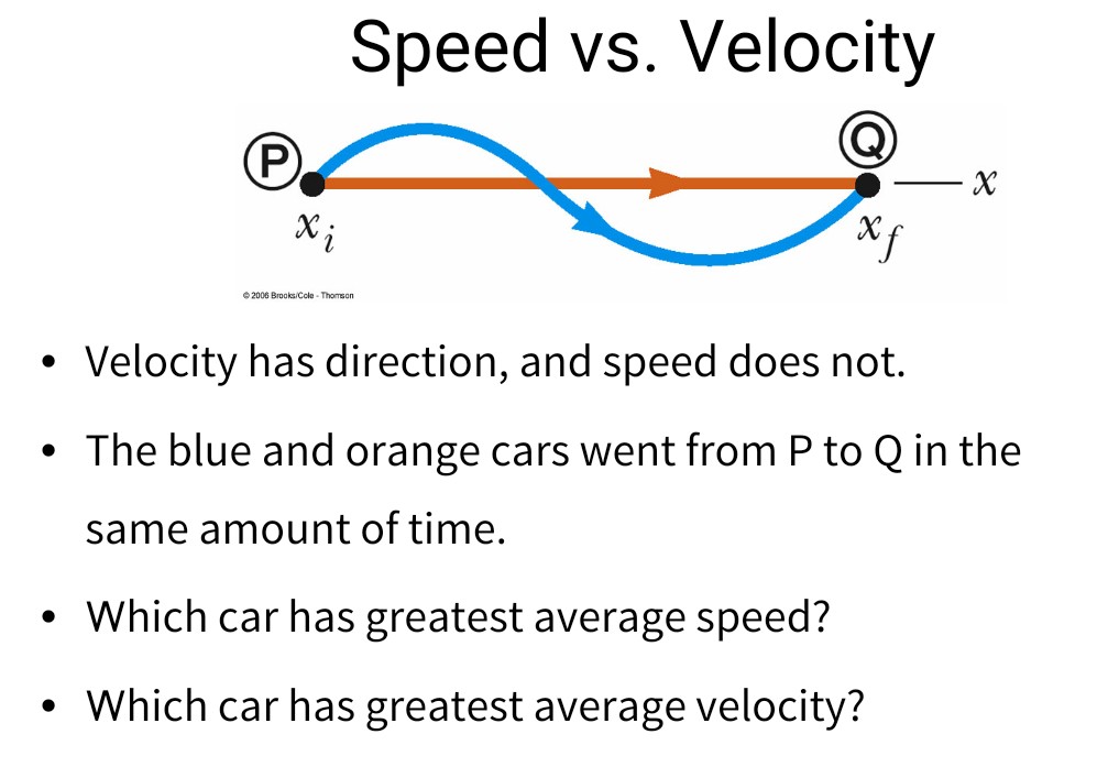 Solved Speed vs. Velocity 2006 Brooks/Cole . Thomson . Is Average Velocity And Velocity The Same Use this formula to find average velocity. In summary, velocity is the rate of change of position with time and is a. Learn how to calculate average velocity, a vector quantity that describes the rate of displacement of an object over time. Average average velocity difference velocity. Speed is a scalar quantity. Learn the difference between velocity and average velocity,. Is Average Velocity And Velocity The Same.