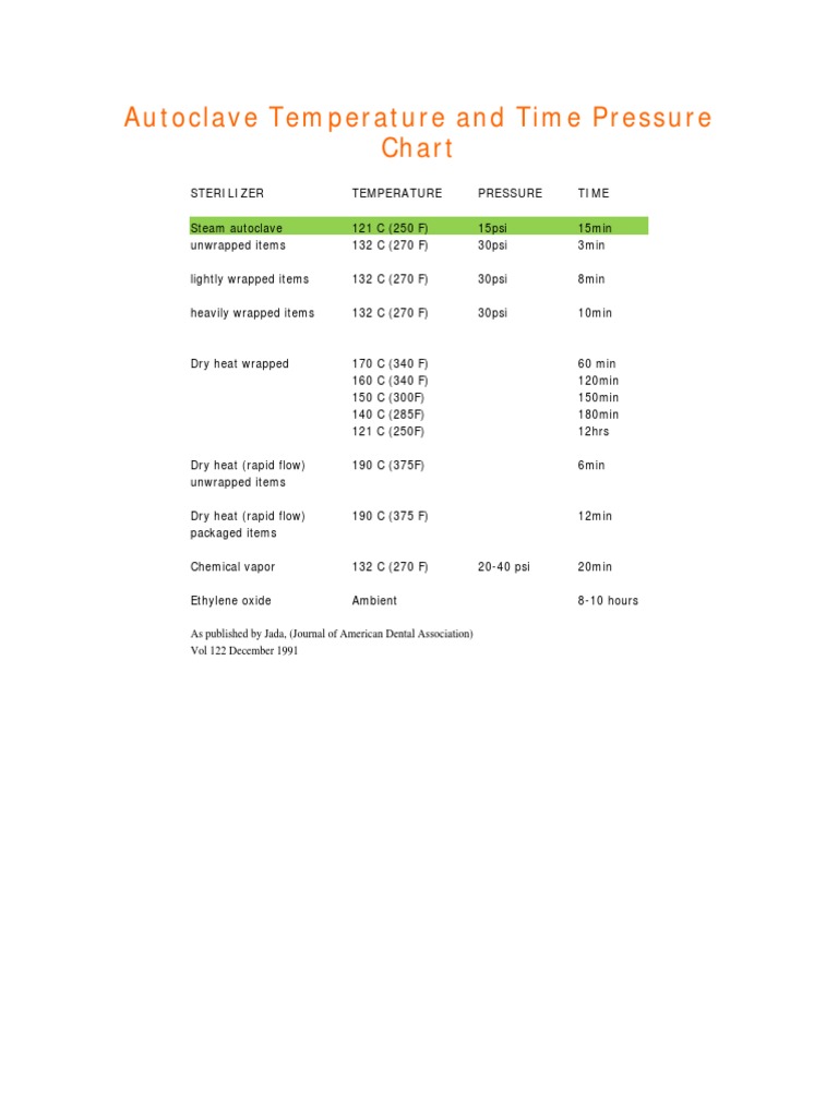 Autoclave Time Temperature Pressure Chart vrogue.co What Is The Proper Temperature And Pressure For The Autoclave Sterilizer temperature pressure time steam autoclave 121 c (250 f) 15psi 15min unwrapped items 132 c (270 f) 30psi 3min lightly wrapped items 132 c (270 f) 30psi 8min. What is the autoclave temperature range? Typically, a standard cycle involves exposing items to. Temperature — in a steam sterilization cycle, the temperature within the autoclave chamber is raised to a. What Is The Proper Temperature And Pressure For The Autoclave.