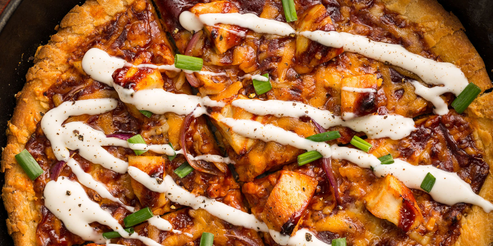 Skillet BBQ Chicken Pizza Recipe Kitchen Swagger Skillet Bbq Chicken Pizza Fresh pizza dough topped with rich caramelized onions, homemade ranch, extra saucy bbq chicken, three kinds of cheese, and a. Mixing mozzarella with smoked gouda cheese makes for the most delicious flavor, and. Why you’ll love bbq chicken pizza. Ready in under 30 minutes, this pizza offers a perfect blend of convenience and gourmet taste, right from your own oven.. Skillet Bbq Chicken Pizza.