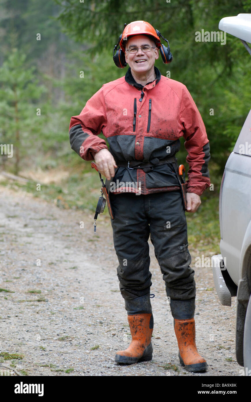 A woodman working in the forest Sweden Stock Photo Alamy