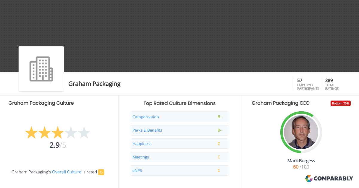 Graham Packaging Culture Comparably Graham Packaging Job Reviews 865 reviews from graham packaging company employees about. 62% of graham packaging employees would recommend working there to a friend based on glassdoor reviews. 61% of graham packaging employees would recommend working there to a friend based on glassdoor reviews. Graham packaging has an employee rating of 3.4 out of 5 stars, based on 406 company reviews on glassdoor which. Graham Packaging Job Reviews.