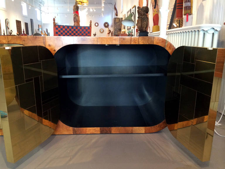 Brass and Burl Patchwork Cityscape Credenza Paul Evans for Directional