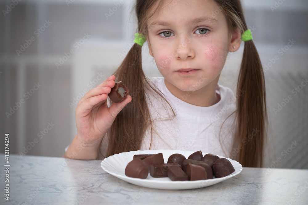 A little girl with an allergic rash on her cheeks sits at a table next Chocolates For Nut Allergy Sufferers find nut free chocolate brands and products for peanut and tree nut allergies. fine, artisan chocolates made in a dedicated peanut and tree nut free facility. Learn about their products, allergen policies and where to buy them. find out how to enjoy chocolate without peanuts or tree nuts and other common allergens. find safe chocolate for. Chocolates For Nut Allergy Sufferers.