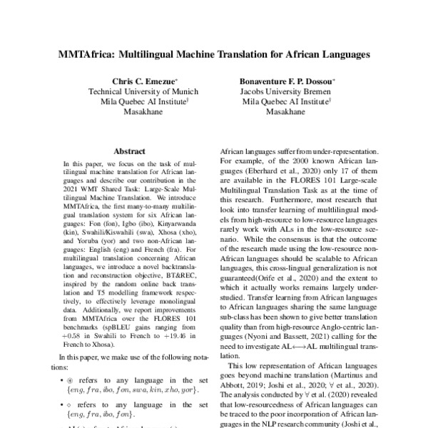 MMTAfrica Multilingual Machine Translation for African Languages ACL