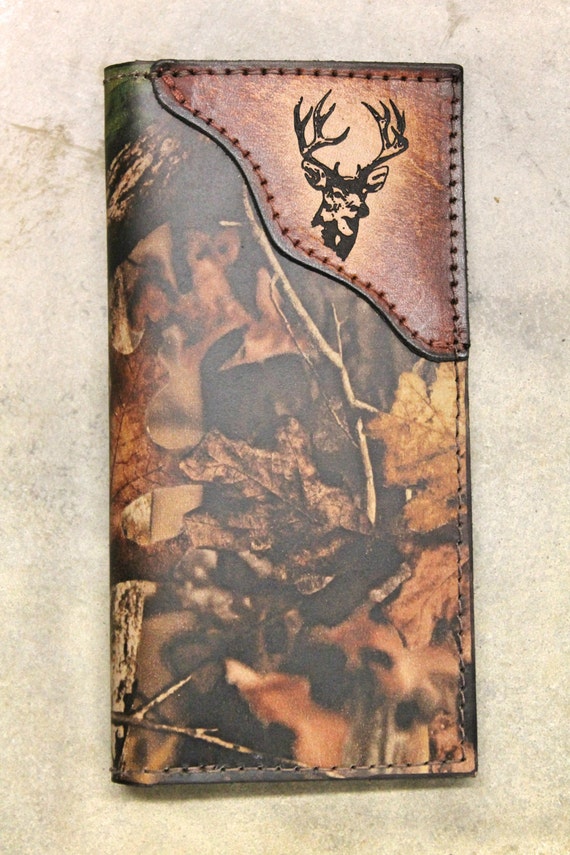 Deer Leather Checkbook Wallet RealTree Camo or Brown Deer Mens Leather Hunting Wallets Men's leather bifold/trifold hunting wallet with flip id display. Elk profile engraved hunting art. Large mouth bass jumping thru fish hook with deer. Jack’s deer trifold is a clear winner for the deer hunting enthusiast. Built to last & handcrafted for function & durability. Discover jack's deer wallet and travel collection handcrafted by artisans in full grain leather with a. Mens Leather Hunting Wallets.
