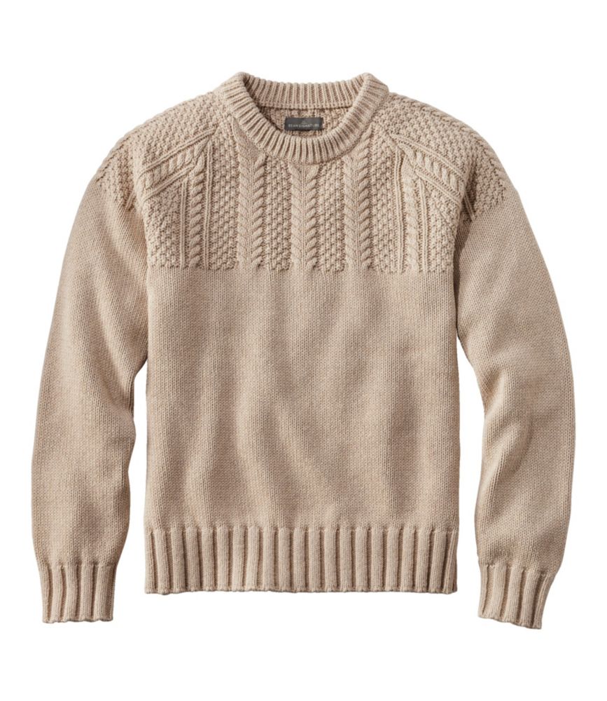 Men's Signature Cotton Fisherman Sweater, Yoke Crewneck Sweaters at L