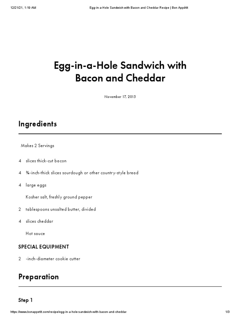 EgginaHole Sandwich With Bacon and Cheddar Ingredients PDF