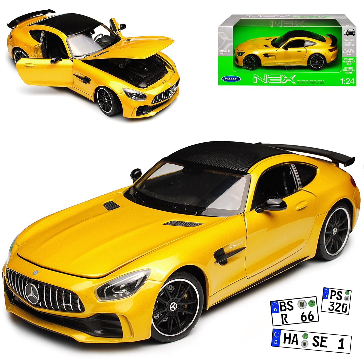 Welly MercedesBenz AMG GT R Coupe Gelb Ab 2014 1/24 Modell Auto mit