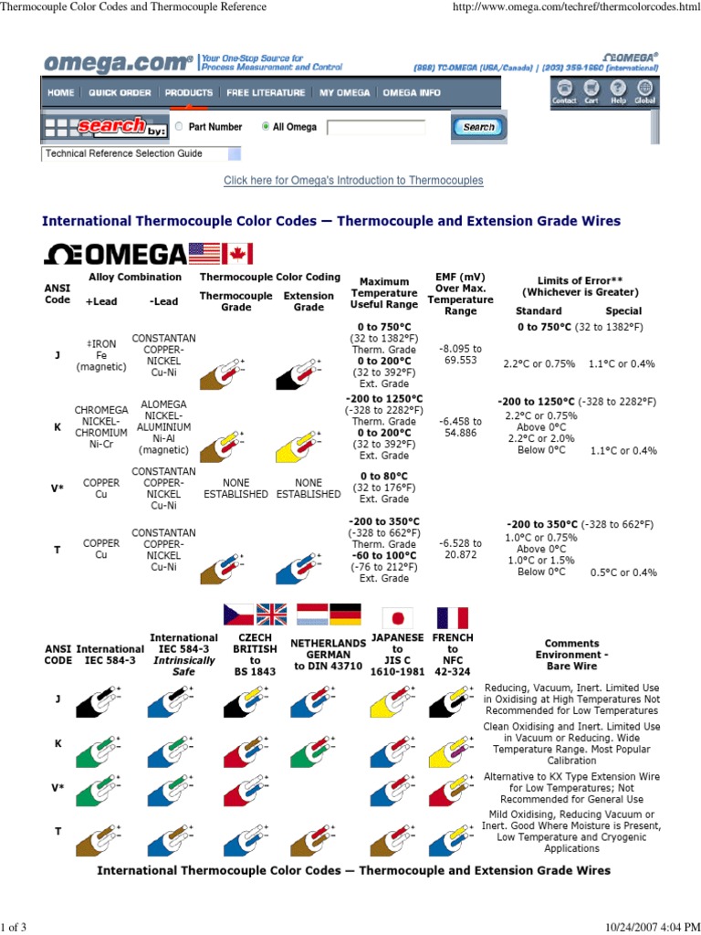 Thermocouple Color Code Type S Thermocouple Color Code Type s thermocouple information, type s thermocouple temperature. The type s can be used in inert and oxidizing atmospheres up to 2,912f (1600c) continuously and up 3,092f (1,700c) for short term use. International thermocouple color code chart thermocouple and extension grade wires ansi mc 96.1 extension grade north. View the printable thermocouple colorcode chart (printable version also contains international color. Type S Thermocouple Color Code.