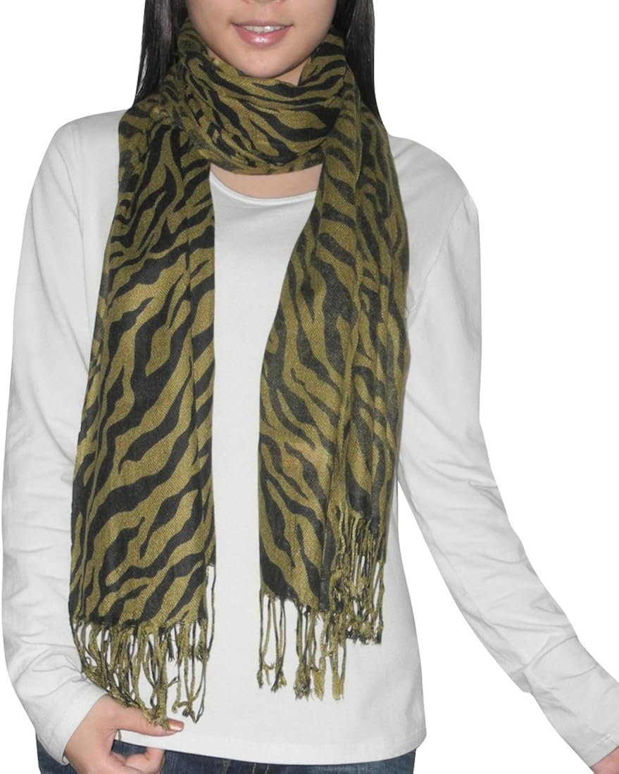 Womens Comfortable & Soft Animal Print Tassel Neck Scarf Army Green