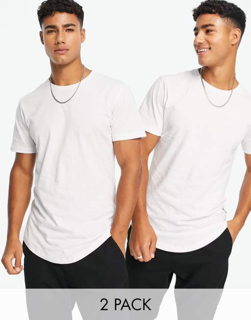 Only & Sons 2 pack longline curved hem tshirt in white ASOS