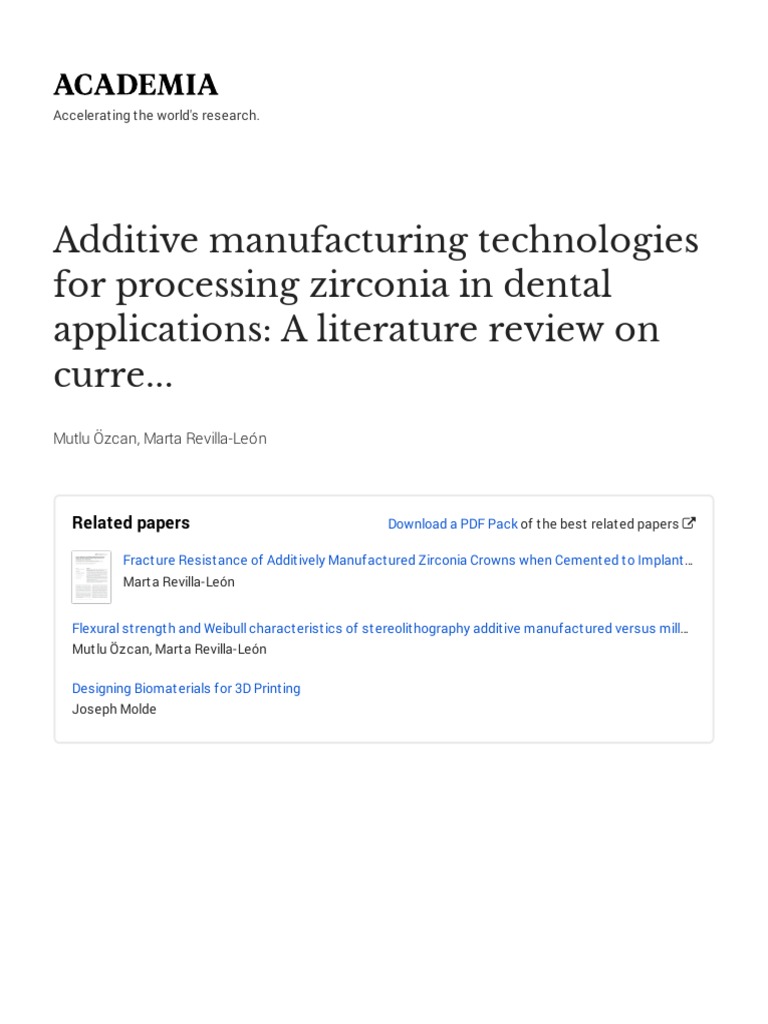 (PDF) Additive manufacturing technologies for processing zirconia in Literature Review On Additive Manufacturing Technology As defined by the american society for testing and materials (astm) and the iso/tc 261 committee for standardization in additive manufacturing, additive manufacturing is a collection. This comprehensive survey aims to underscore the transformative impact of additive manufacturing on global manufacturing, emphasizing ongoing. Based on this analysis, the evolution of the am research. This paper presents a literature review of. Literature Review On Additive Manufacturing Technology.