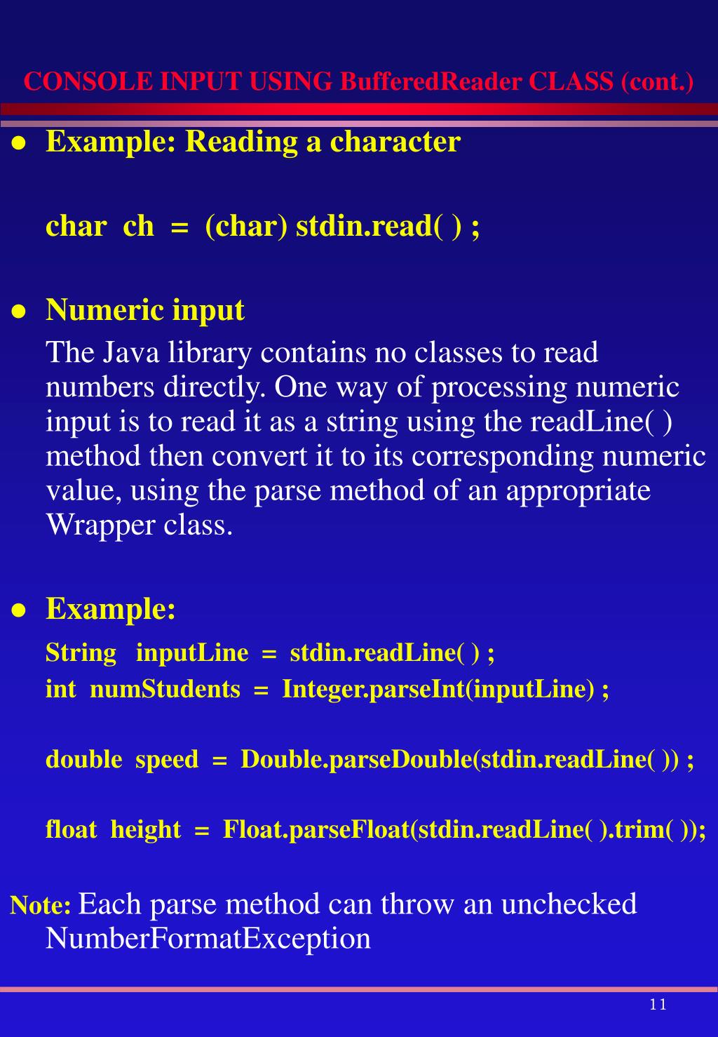 PPT Reading Input PowerPoint Presentation, free download ID3480029 Input Using Bufferedreader In this article, we’ve explored the basics of getting user input in java using bufferedreader. This is the java classical method to take input, introduced in jdk 1.0. This method is used by wrapping the. You can't read individual integers in a single line separately using bufferedreader as you do using scannerclass. Finally, the source code for the examples is. Input Using Bufferedreader.