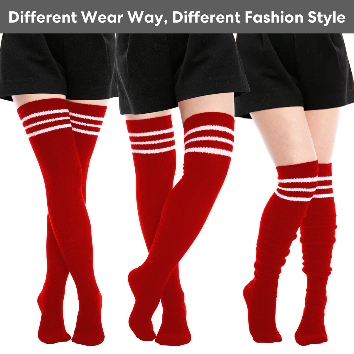 Extra Long Warm Knit Striped Thigh Highs Leg Warmers丨Moon Wood Red And Black Striped Thigh Highs Wide striped thigh high socks that fit beautifully on legs of all sizes, short and slender to tall and curvy. Featuring a black and red stripe design for a punk look. They're exclusive to sock dreams and made in the usa. Black and red striped thigh highs for sale | ebay. Perfect to wear with halloween costumes! Get the best. Red And Black Striped Thigh Highs.