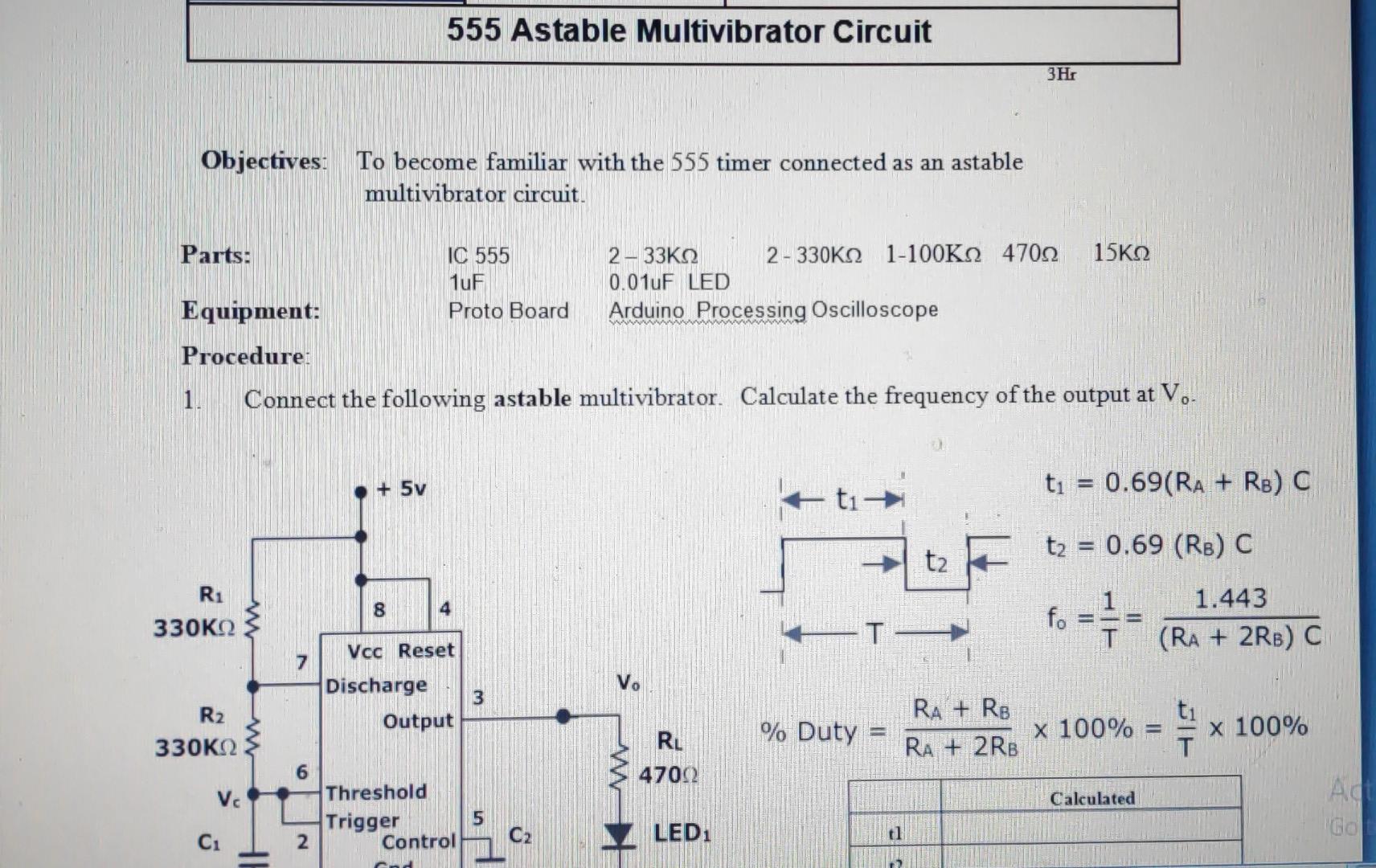 Solved 555 Astable Multivibrator Circuit ЗНr Objectives To