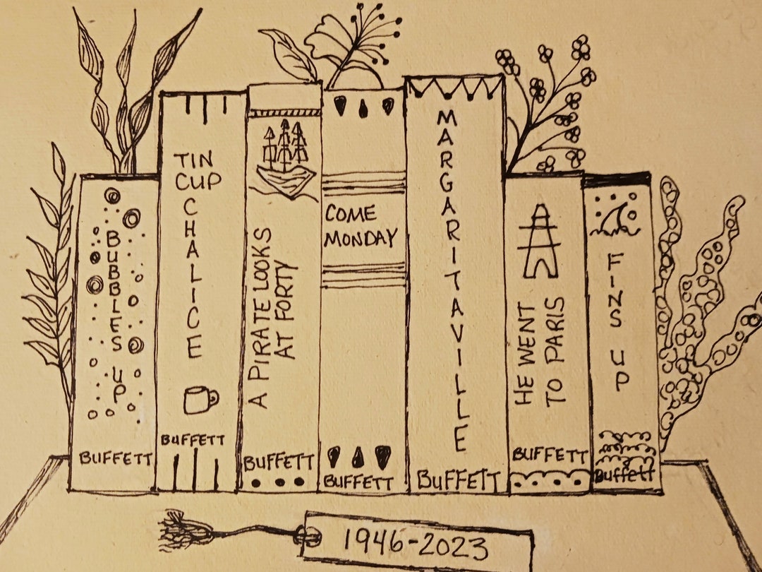 Jimmy Buffett Bookshelf Song Lyric Wall Art ORIGINAL Drawing on