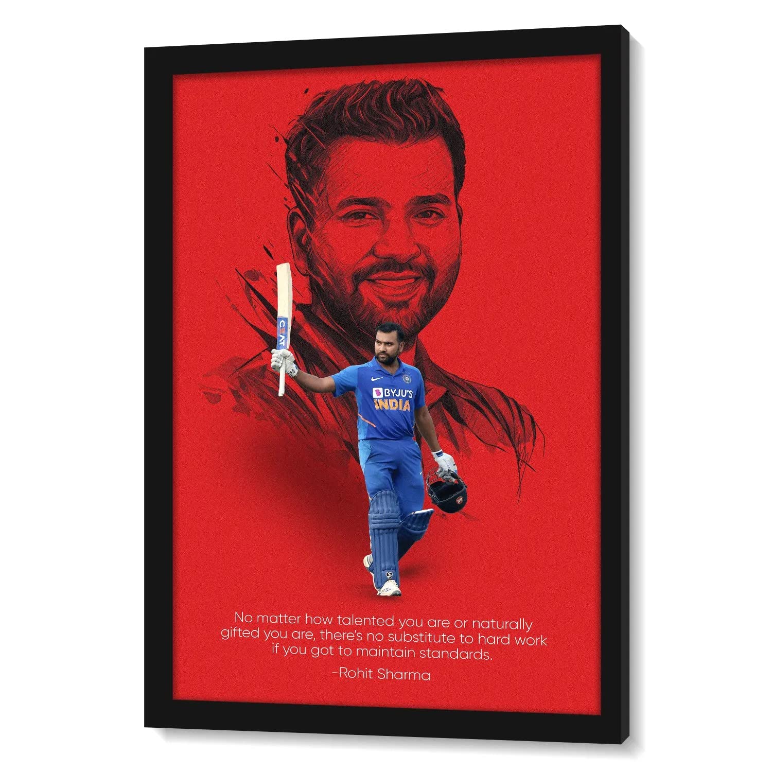 Ritwika's Wood Digital Painting Of Cricketer Rohit Sharma Sports Poster
