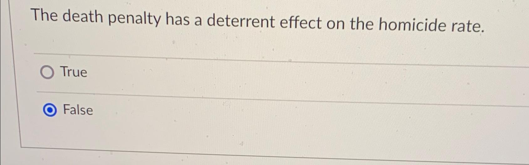 Solved The death penalty has a deterrent effect on the What Is The Deterrent Effect Death Penalty It examines this matter on the basis of. The web page challenges the claim that the death penalty is the strongest deterrent to violent crime, citing studies and surveys that contradict it. Deterrence is the crime prevention effect of the threat of punishment. It concludes that the evidence is inconclusive and subject to various. Learn how certainty, severity, police, and. What Is The Deterrent Effect Death Penalty.