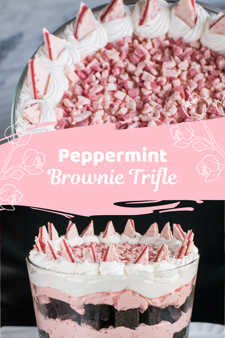 Peppermint Brownie Trifle! So simple and quick to whip up! Peppermint Easy Brownie Peppermint Trifle This beautiful brownie trifle stands tall with layers of chewy brownie chunks, fluffy chocolate pudding, and whipped cream. You’ll need your favorite brownie recipe, a large box of instant chocolate pudding, cool whip, and peppermint candies. 1 pkg (18.3 oz or 450 g) fudge brownie mix (plus ingredients to make brownies) 1 pkg (10 oz/300 g) peppermint hard candies, unwrapped.. Easy Brownie Peppermint Trifle.